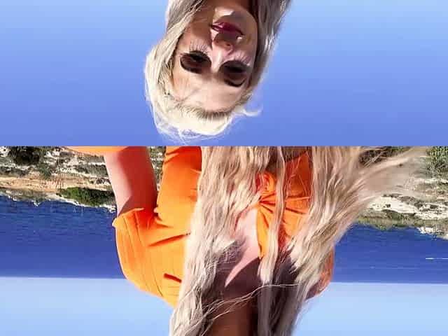 Yoga shorts, big boobs blonde