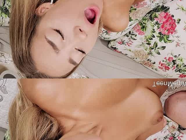 Slim blonde teen Destiny Garnet takes a massive cock with her tight pussy