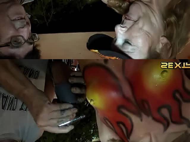 Amateur party teens flash tits outdoors