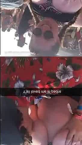 Flashing huge tits at beach