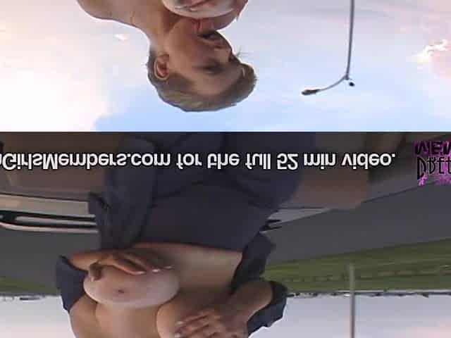 Blonde is flashing her big boobs in the outdoors