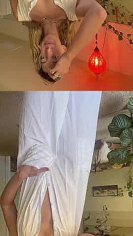 Hot Wife Cleaning Yoga Mat And Flashes Booty Below Petticoat Outdoors