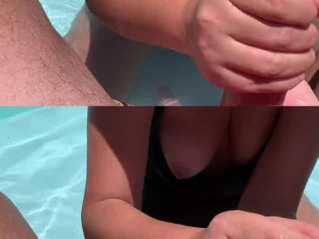 POV waitress sucking my dong in villa s swimming pool