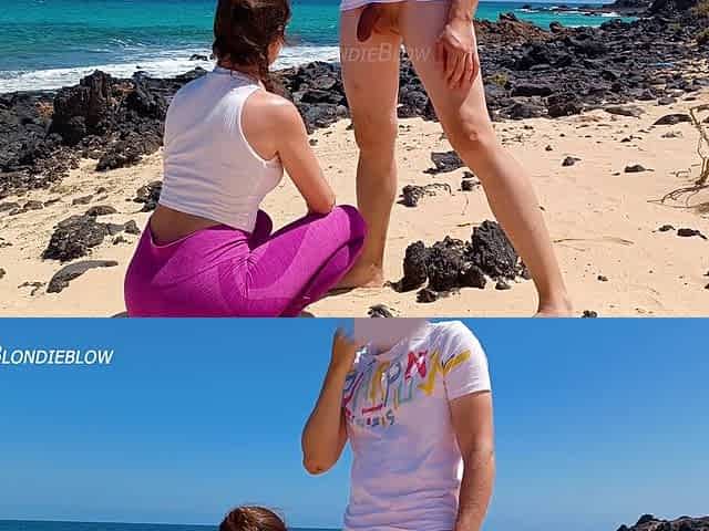 Public beach babe wets her pants and delivers a steamy blowjob
