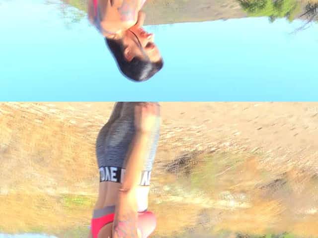 Sporty Valentina jogs in a park and shows her nude body