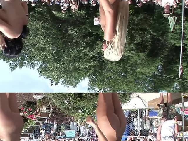Party girls get naked in public during a massive outdoor party