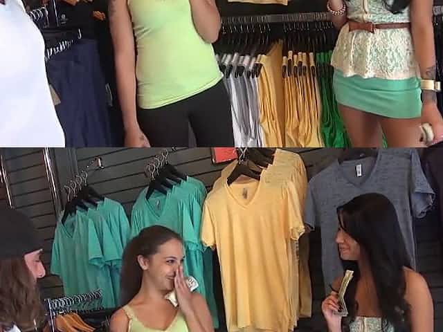 Sexy babes flash tits for money