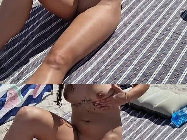 public flashing of boobs and cunt on the beach