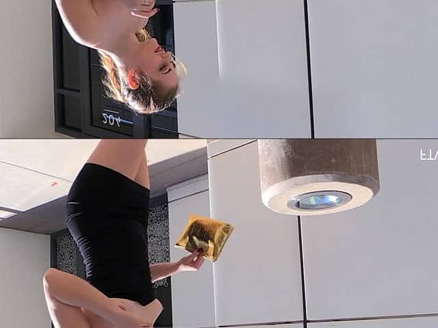 Brooke Haven enjoys a snack while flashing her big-ass titties