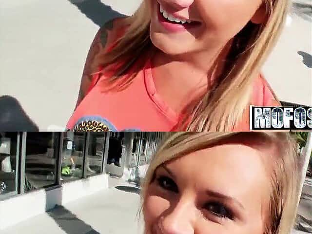 Chubby blonde flashes her huge tits in public for money