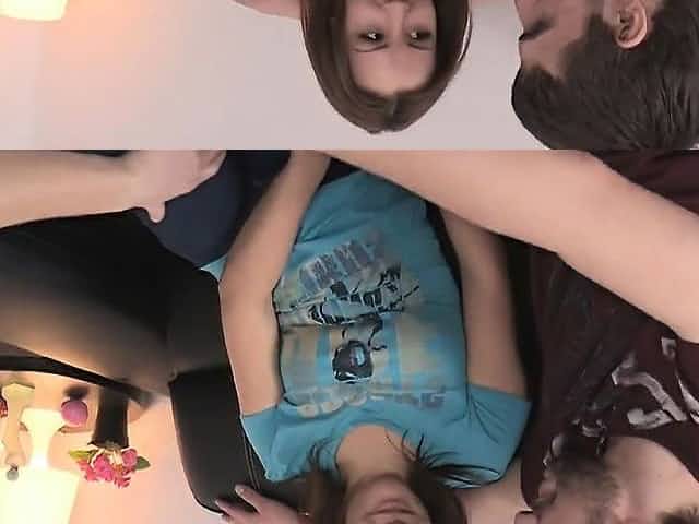 Flat chested teen Hollie Shields deeply banged on the couch