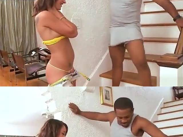 Cute flat chested Sindee Jennings in interracial porn video