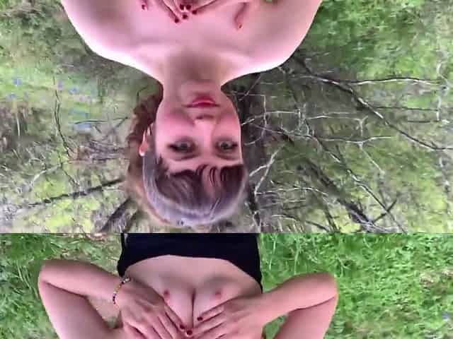 Naughty petite brunette teen gets covered in cum in the forest