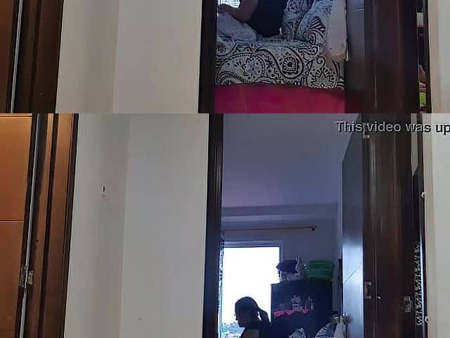 Wicked Oriental chick, in red pants is getting banged by her lewd roommate, on the floor