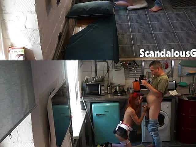 "My exgirlfriend gladly swallowing my stepdad's cum after throating his shaft "