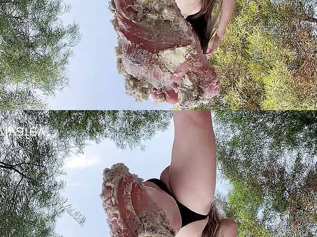 Lovely blonde is toying her cunt outdoor