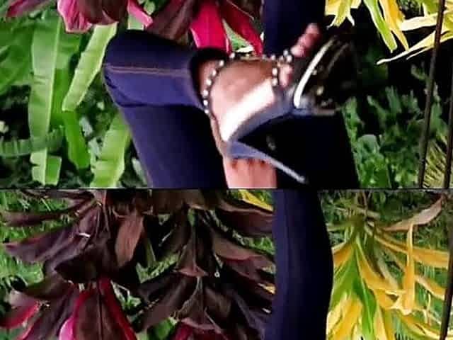Crushing fruits with her heels