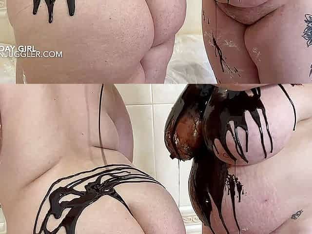 Fran plays with food on her body