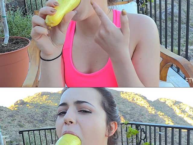Zucchini double penetration proves exciting to the brunette cutie