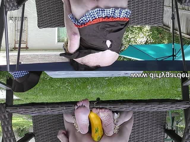 Busty MILF Presents Her Feet and Plays with a Watermelon