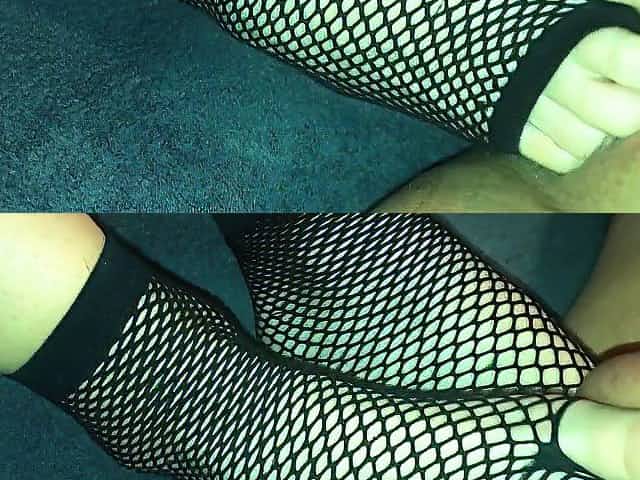 Amateur footjob #51 hawt fishnet socks, sexy cum in sock