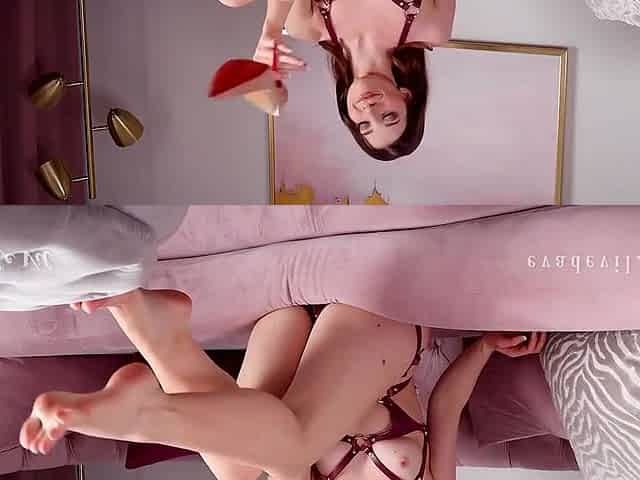 Foot fetish, shoe fetish, and slender long legs fetish. Spitting and slapping for a slave