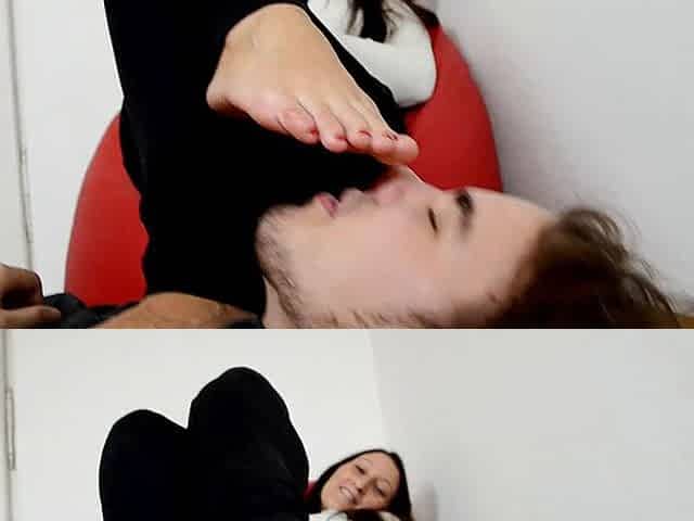 Femdom girl punishing her slave with foot on his face