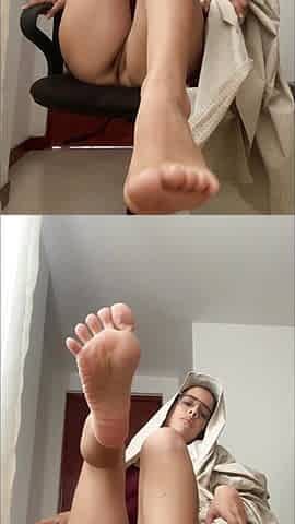 "Arab with playing masturbating her anus with bare and clean feet"