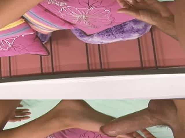 Ebony footjob, mini stallion creampie