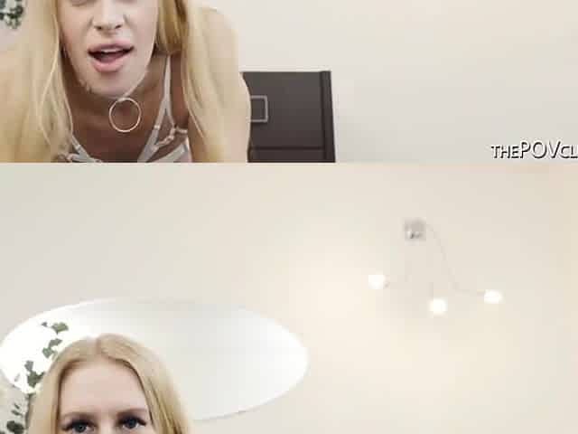 Naughty Czech blonde Amy Pink indulges in sensual blowjob, playing with BBC foreskin and taking a mouthful of cum in POV