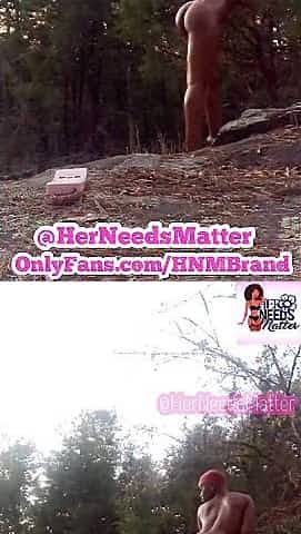 Hot Nicolette Noir goes commando all the time and she loves peeing in the woods