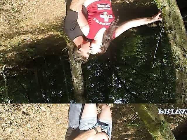 Russian teen babe & her boyfriend go wild licking asses in the woods and getting pounded
