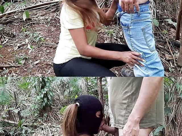 whore sucking dick in the forest and giving pussy