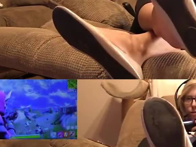 Playing Fortnite and showing feet soles and shoes soles
