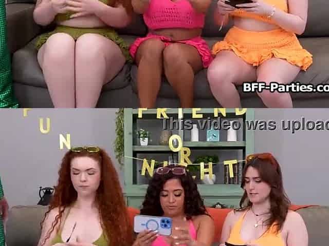 Curvy girlfriends enjoying knob on game night