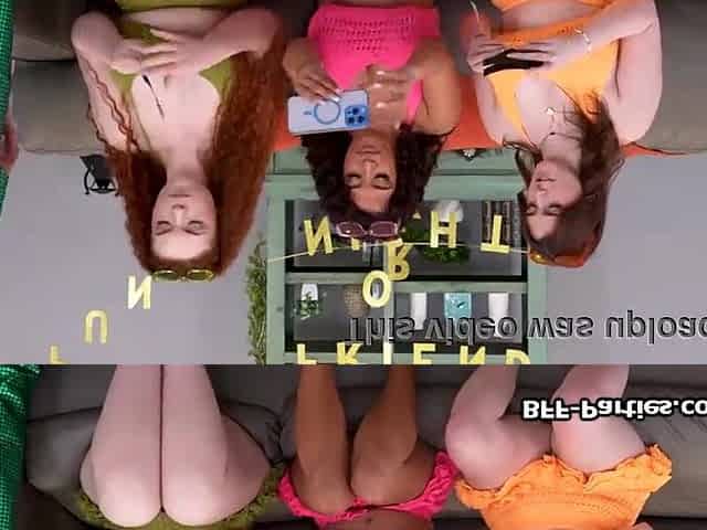 Curvy girlfriends enjoying wang on game night