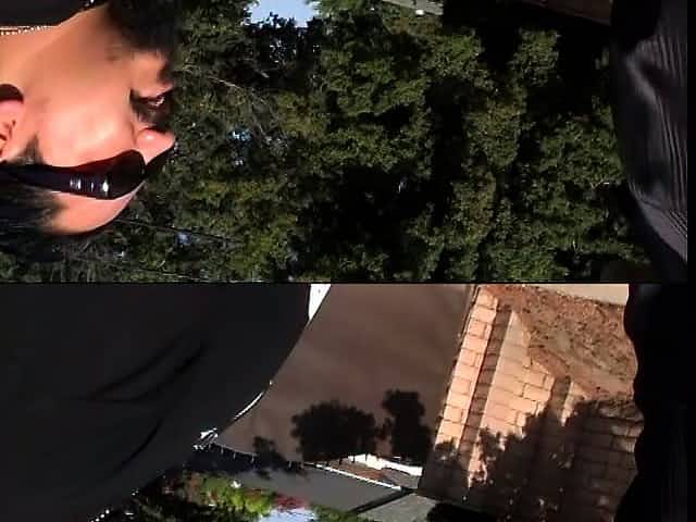 Freaky cock-sucking bitch gets impaled on a mastodonic dildo
