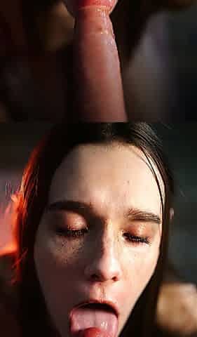 cumshot young brunette girl with sexy freckles giving oral s