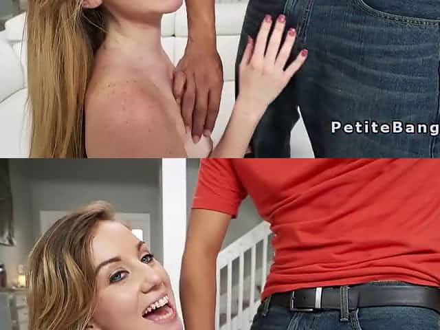 Freckled little blond bangs big dick inside