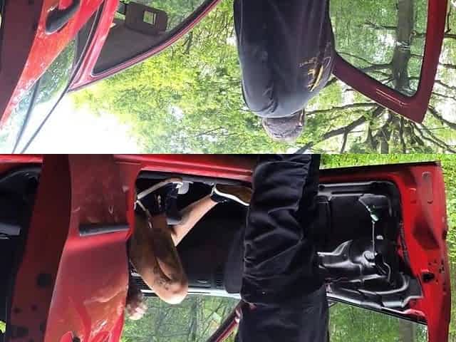 Baring her assets in the car