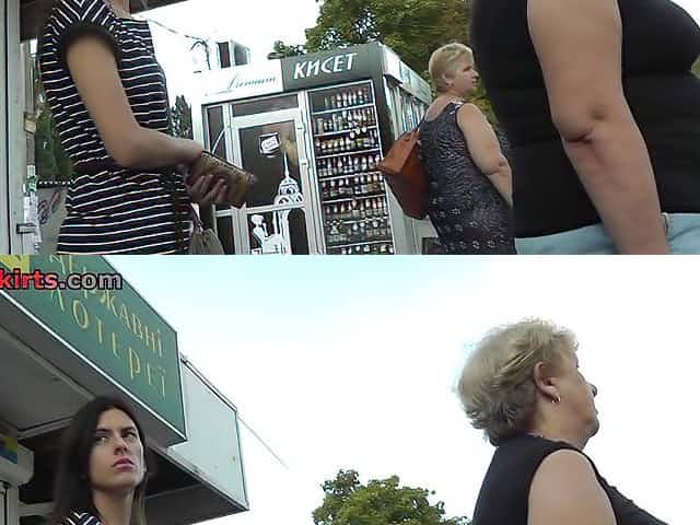 Free voyeur upskirt public show with two hot chicks