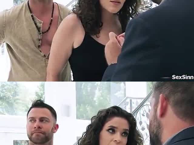 Watch Odette Fox's natural tits bounce as she gives Charles Dera's client an extra pussy