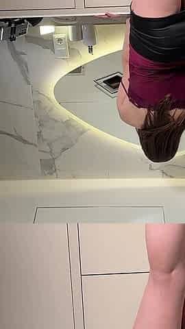 See Through Skirt and Red Thong She Takes off Turns Into a Seduction Point in the Bathroom with Long Legs Secretary