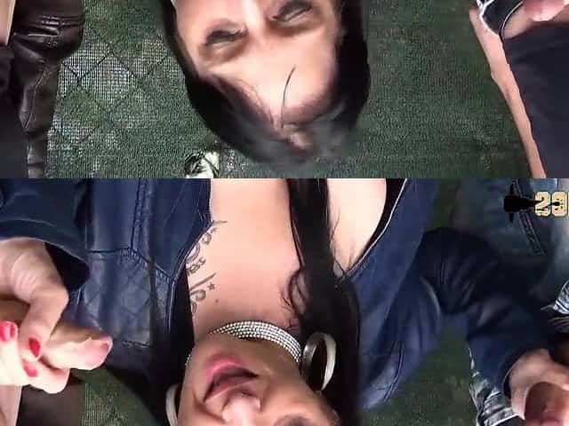 Florence fucked in a threesome in a paintball field