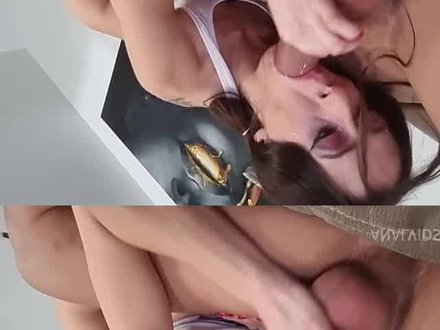 tiny soumise suce une grosse bite a quatre patte avec sa laisse - Epador