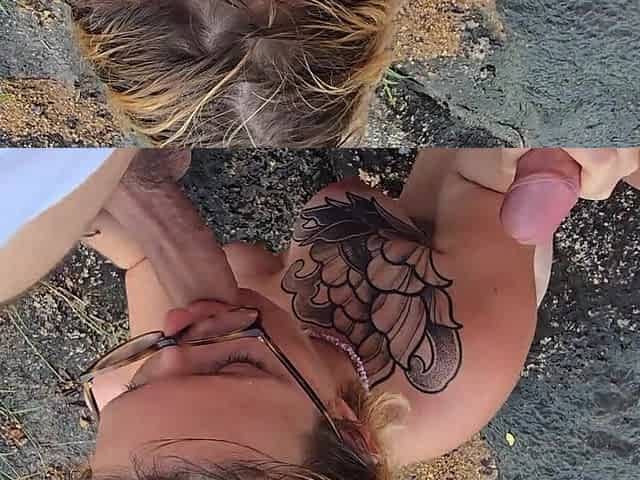 Exhibitionist Outdoor Amateur Girl Sucks Big Cock on Nudity Beach to Viewer with Cum