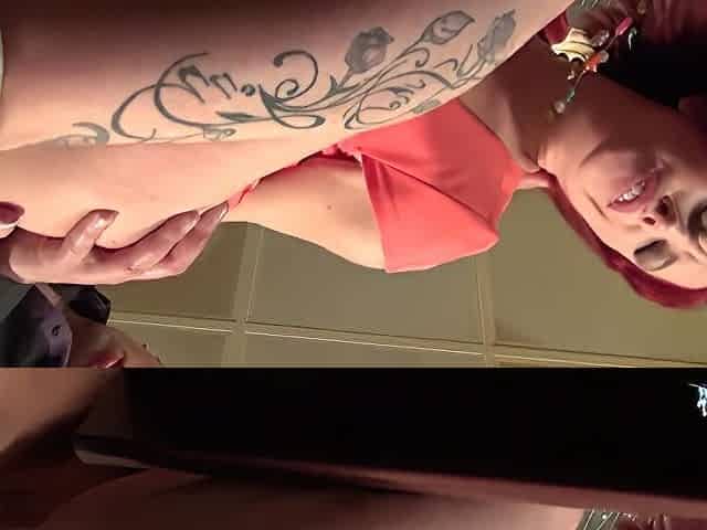 Perverted tattooed chick is getting bonked hard on the couch