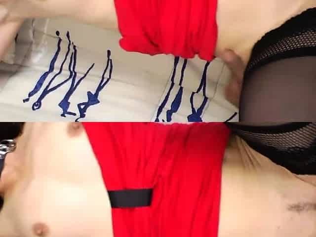 My amateur large titties wife in suspender thong