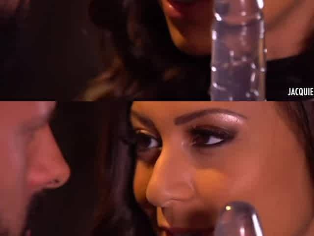 Maya, a nice-looking minx, gets stuck between 2 tails