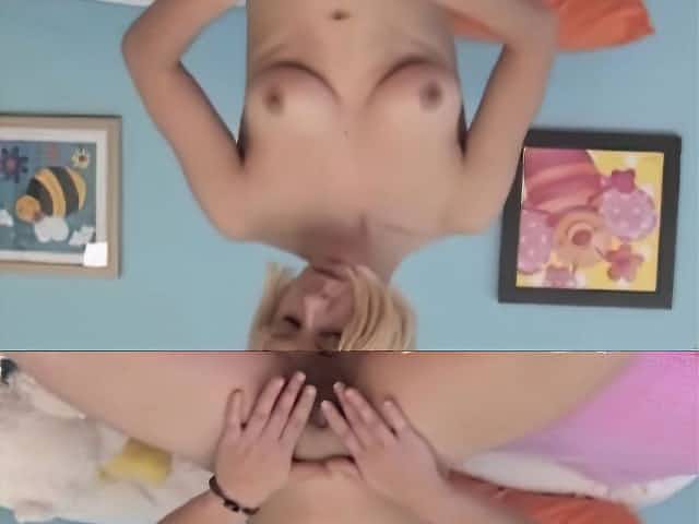 Pretty blonde teen french gf dildo plugging fun